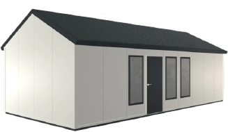 A larger one-bedroom model with extra living space, perfect for singles, couples, or rental income.