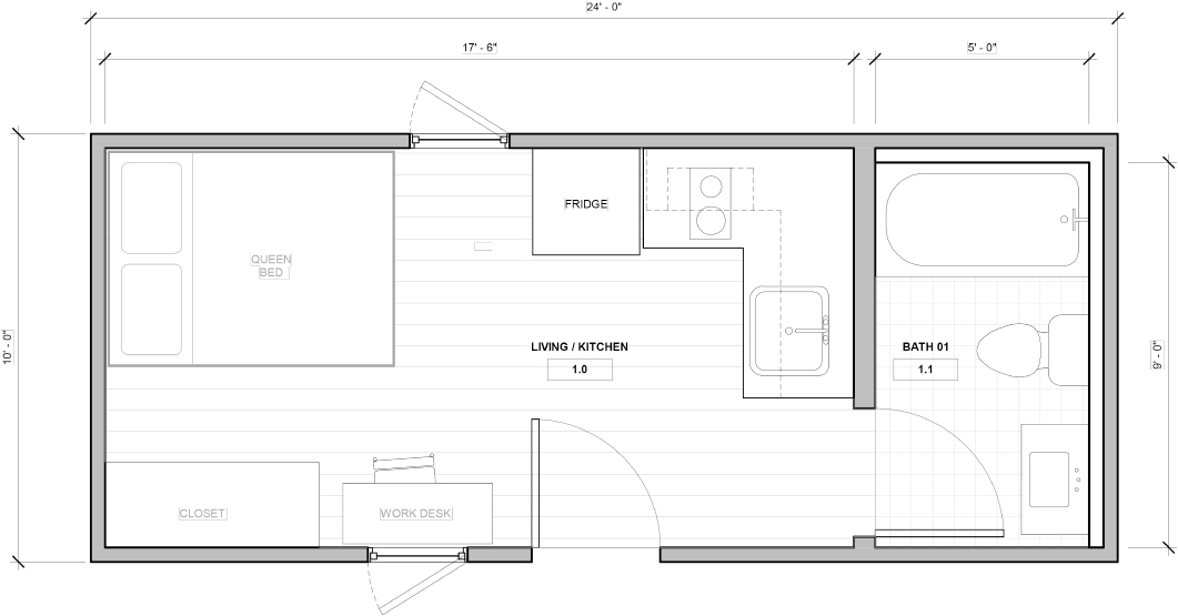 A sleek and efficient space, perfect for a backyard office, guest suite, or creative studio.