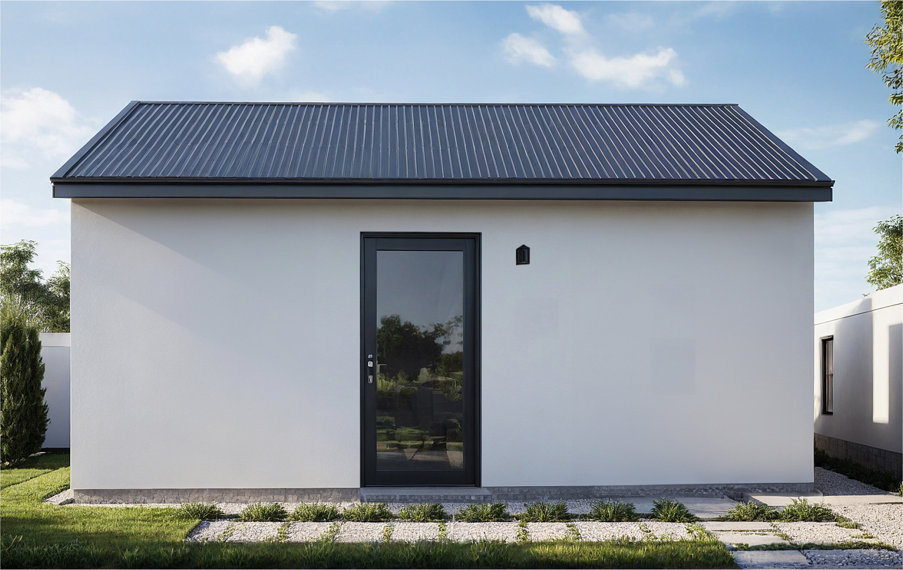 A sleek and efficient space, perfect for a backyard office, guest suite, or creative studio.