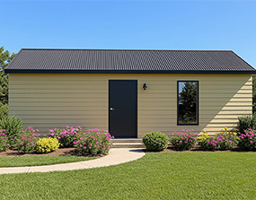 - Weatherproof interlocking panels w/ steel studs