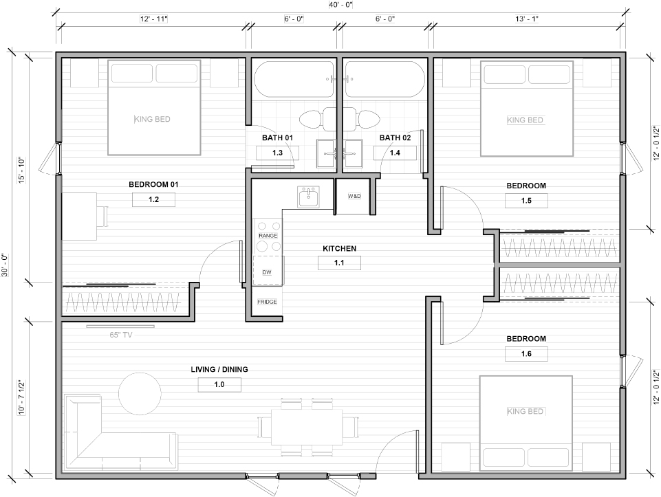 A full three-bedroom ADU designed for maximum space and comfort, perfect for families or long-term rentals.
