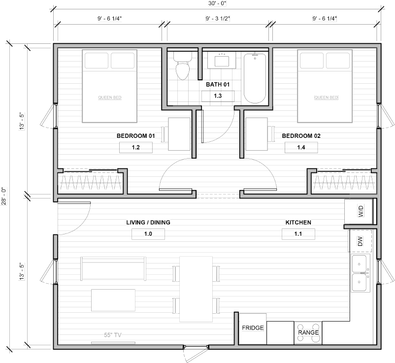 Two cozy bedrooms in an efficient design, ideal for small families or shared living.