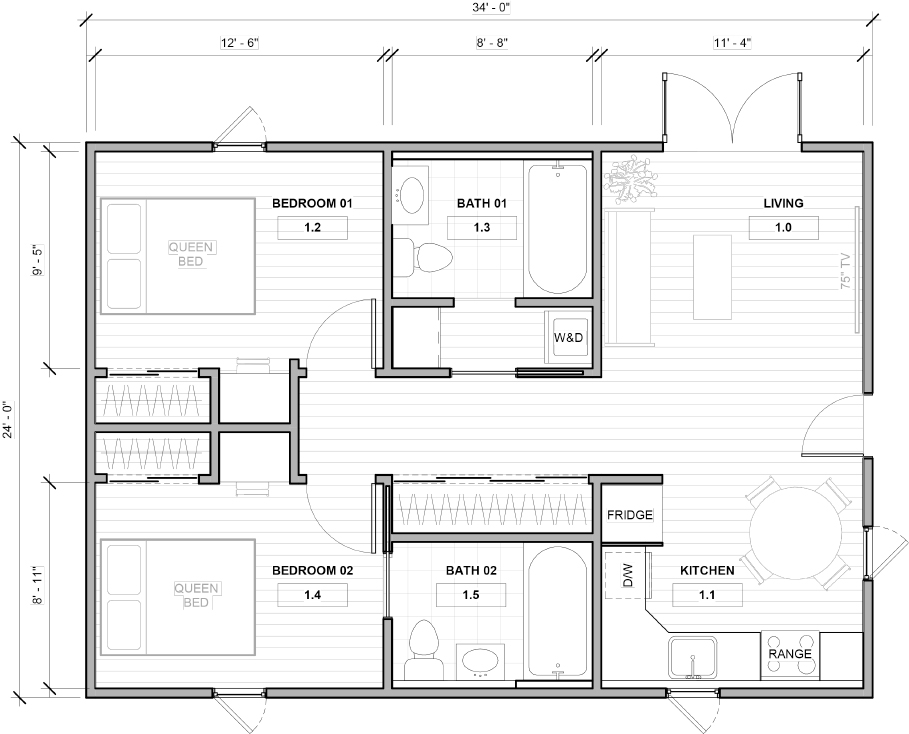 A two bedroom design with a master suite and a bathroom for guests providing more functionality.