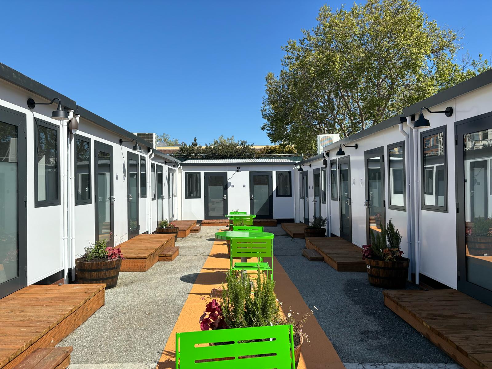 BOSS Cubez provides 65 high quality rooms for individuals experiencing homelessness in the City of San Francisco. A beautiful interim housing community with 60 private sleeping rooms, 4 offices, a dining hall and common spaces.
