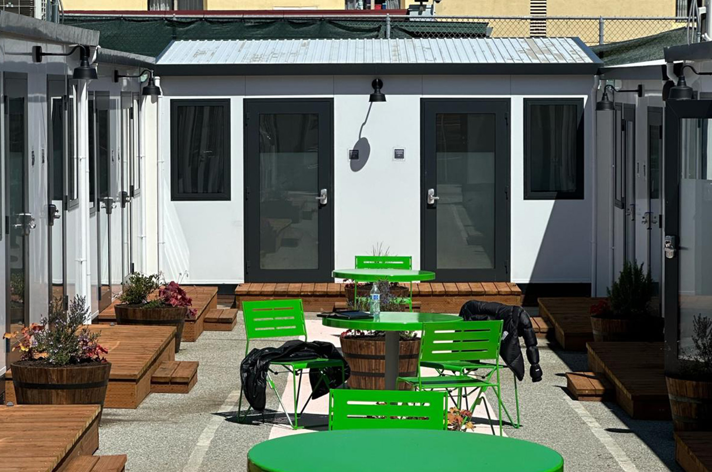 BOSS Cubez provides 65 high quality rooms for individuals experiencing homelessness in the City of San Francisco. A beautiful interim housing community with 60 private sleeping rooms, 4 offices, a dining hall and common spaces.