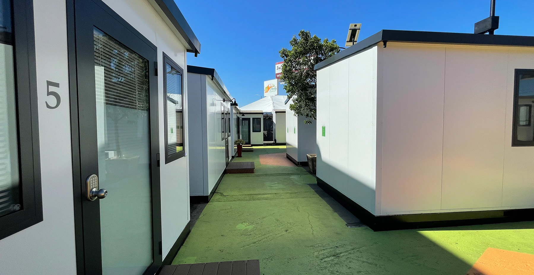 BOSS Cubez provided 16 high quality homes intended to provide temporary housing for families experiencing homelessness before they are placed into permanent accommodations. Residents will be offered individual on-site services such as case management, health and mental health services, three meals a day, restroom, laundry, shower trailers, and an on-site computer room to facilitate homework and job training.