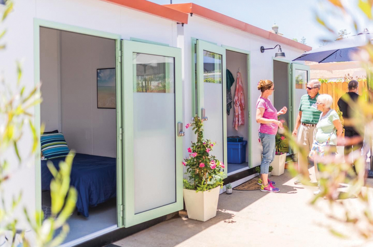 BOSS provides 40 high quality rooms for individuals experiencing homelessness in the City of Santa Barbara. A vacant parking lot was upgraded into an unobtrusive interim housing community with 33 private sleeping rooms, 3 offices, a dining hall and common areas. BOSS was tasked with thoughtfully designing buildings to match the traditional Santa Barbara building styles.